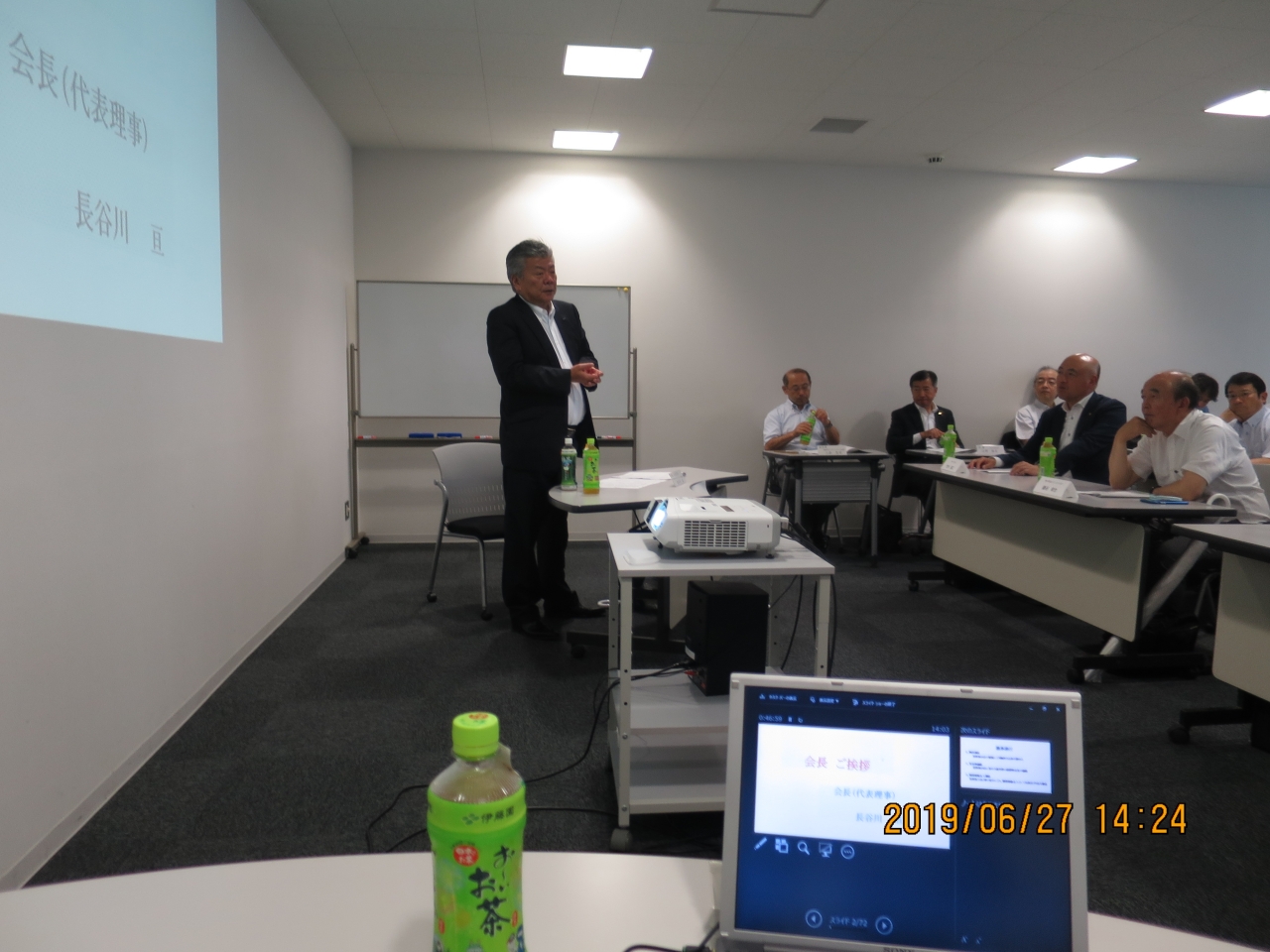 長谷川会長の開会挨拶に引き続き定款第16条の規程により会長が議長席に登壇し定足数充足の確認の後、 議事進行に入りました。